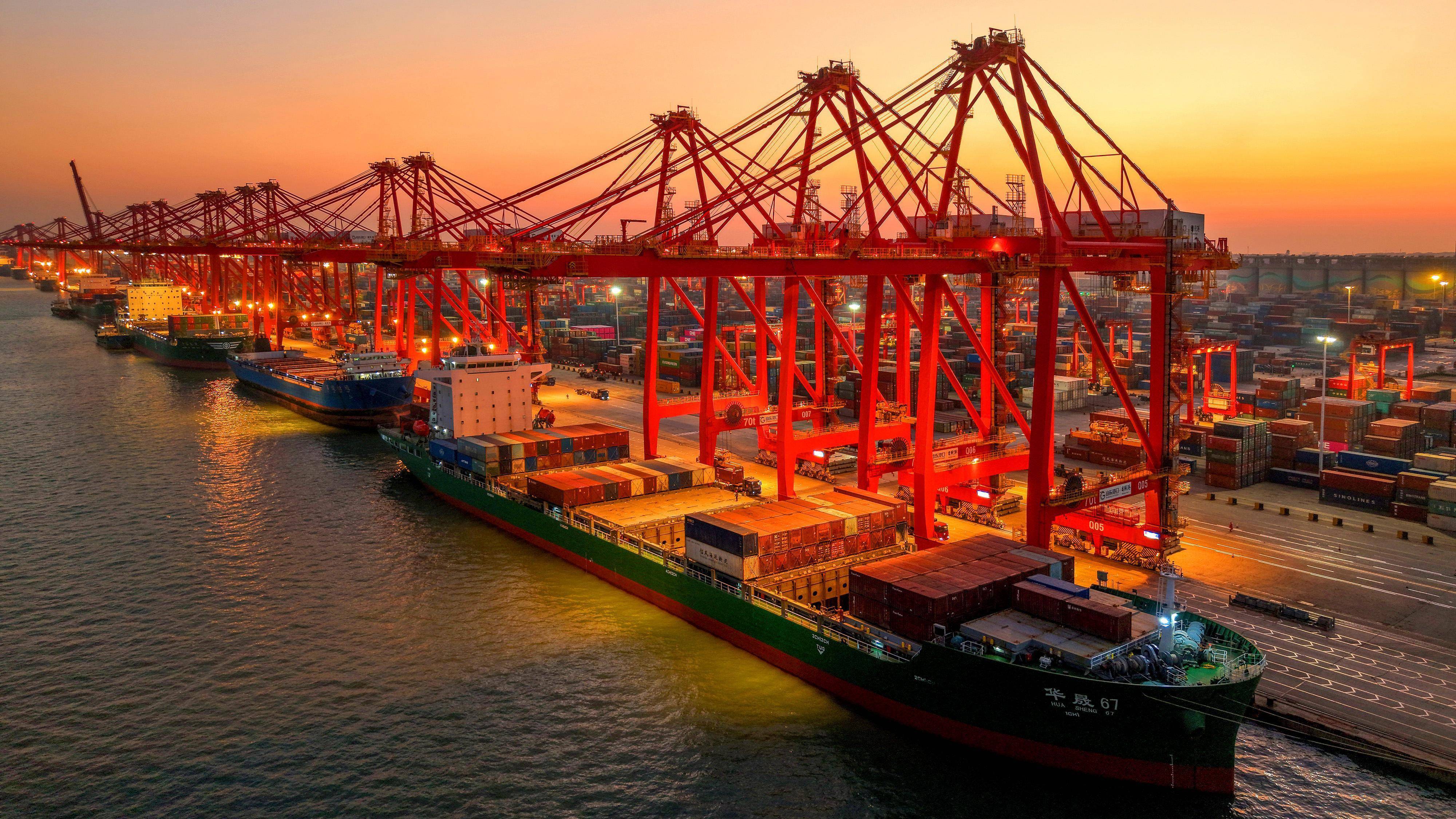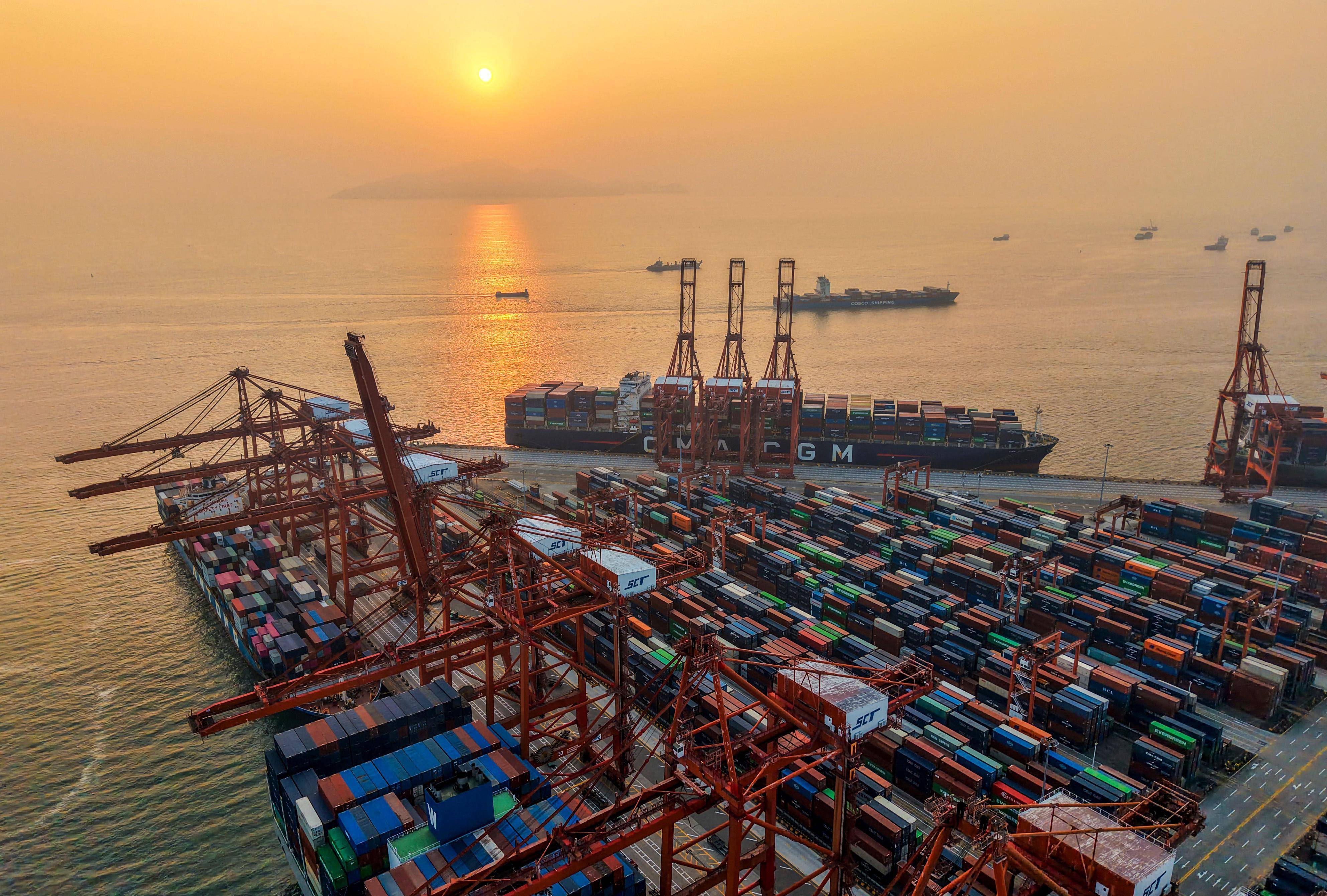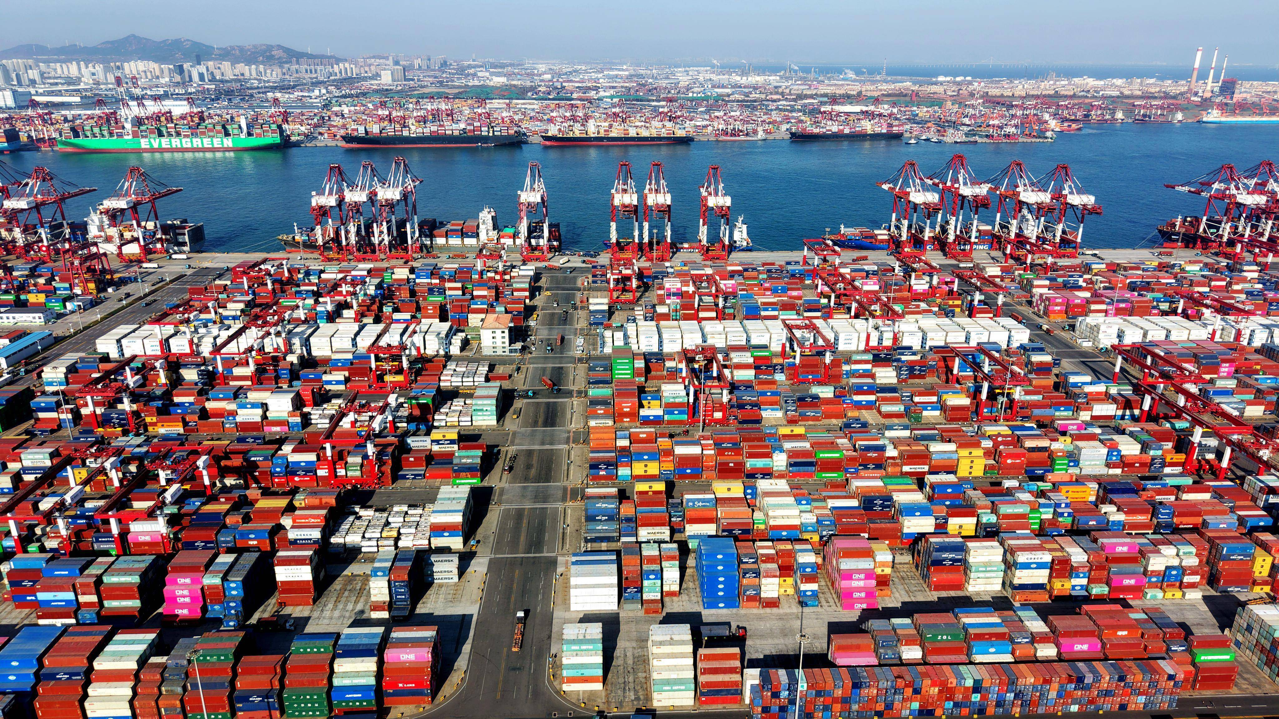 12月1日拍摄的山东港口青岛港外贸集装箱码头(无人机照片)。 新华社发(俞方平摄)