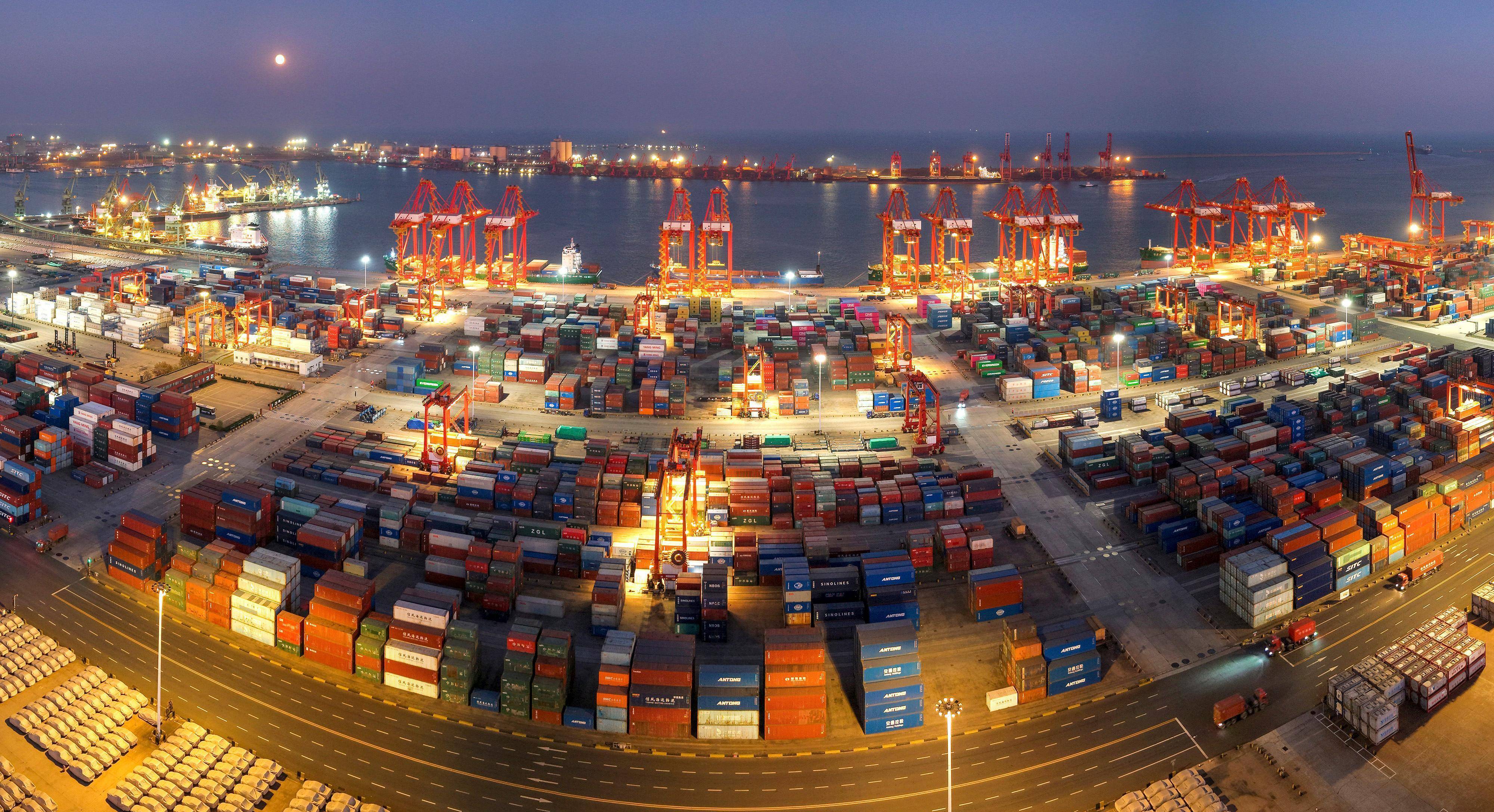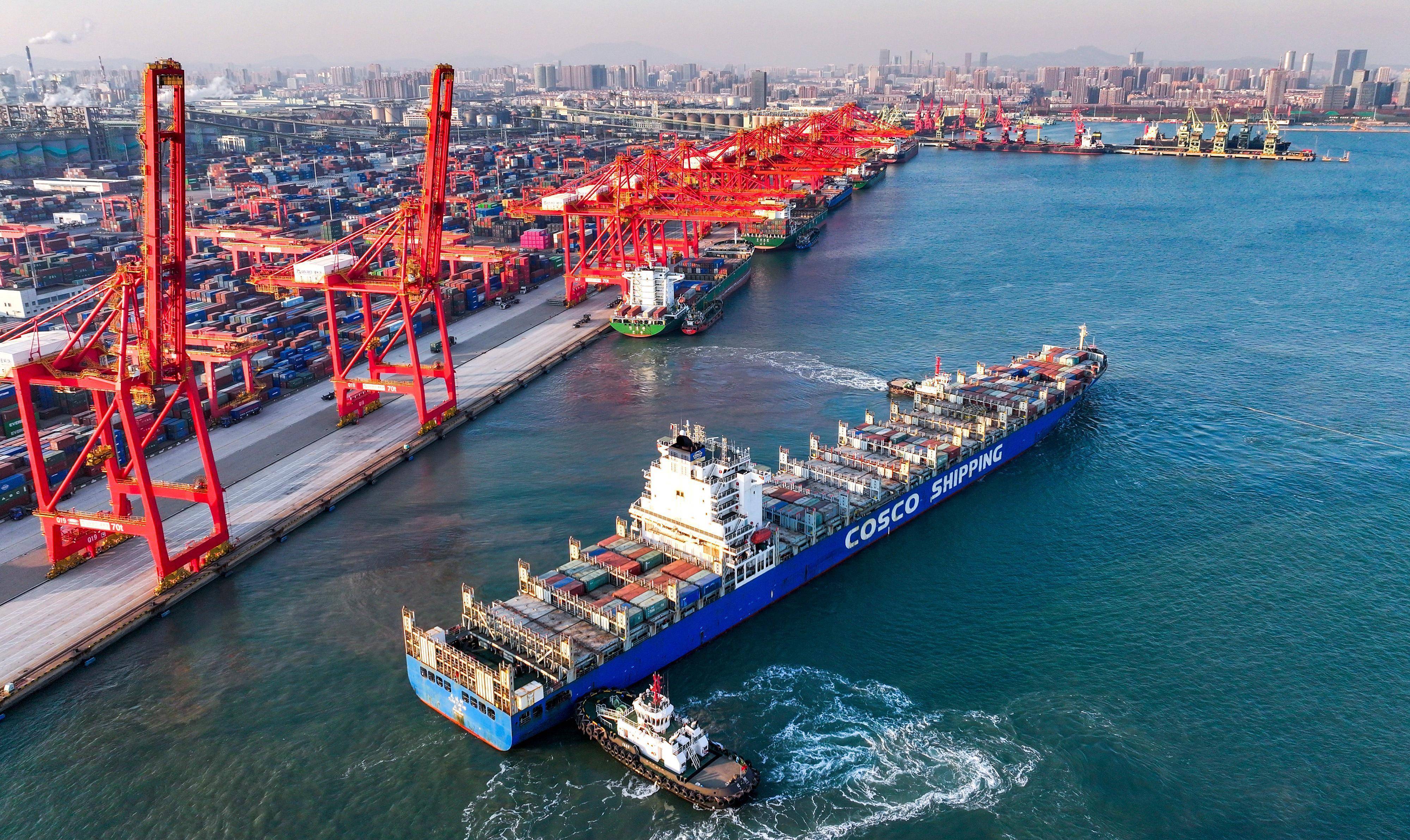 12月8日拍摄的山东港口青岛港(无人机照片)。 新华社发(张进刚 摄)