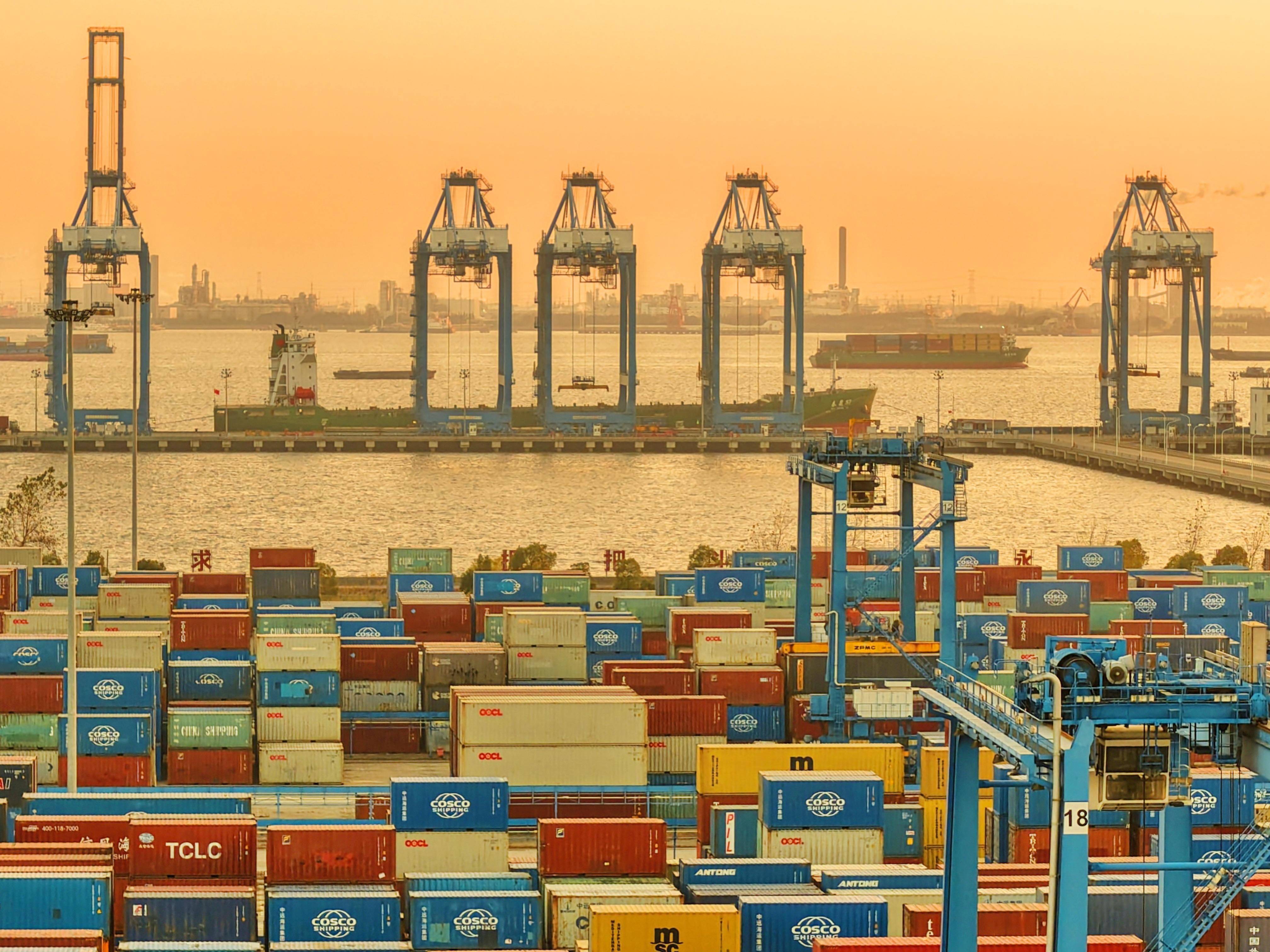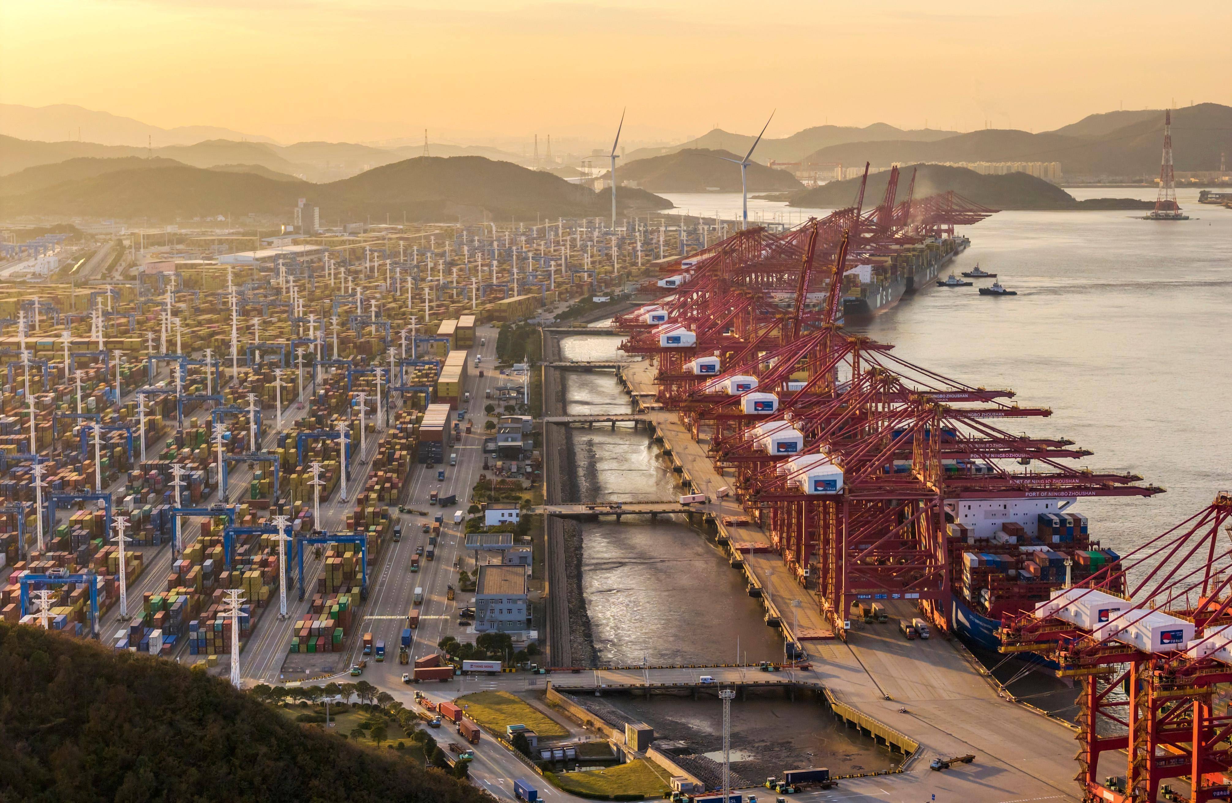 12月4日拍摄的宁波舟山港穿山港区集装箱码头(无人机照片)。 新华社发(汤健凯摄)