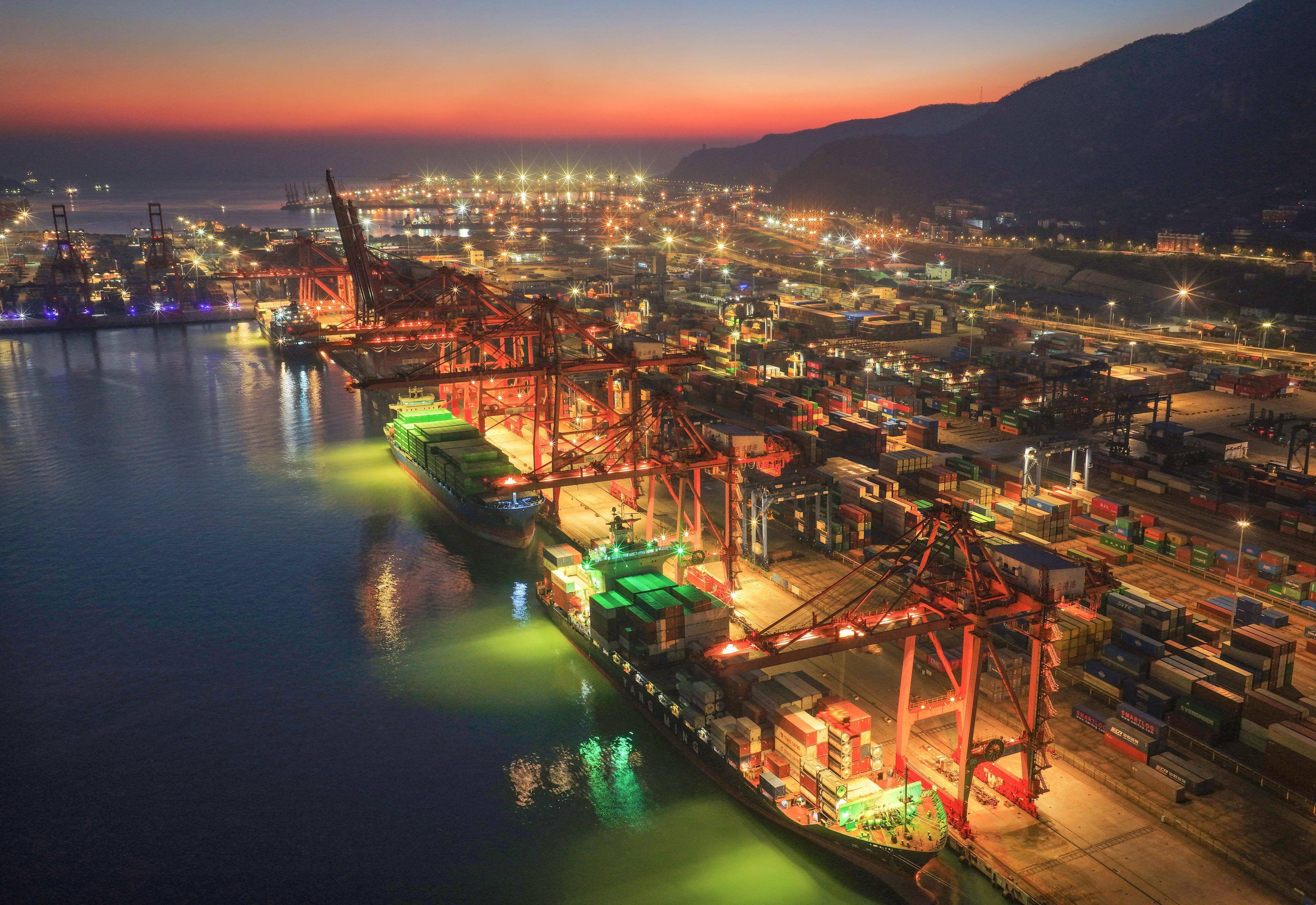 12月4日凌晨拍摄的江苏连云港港集装箱码头(无人机照片)。 新华社发(王健民摄)
