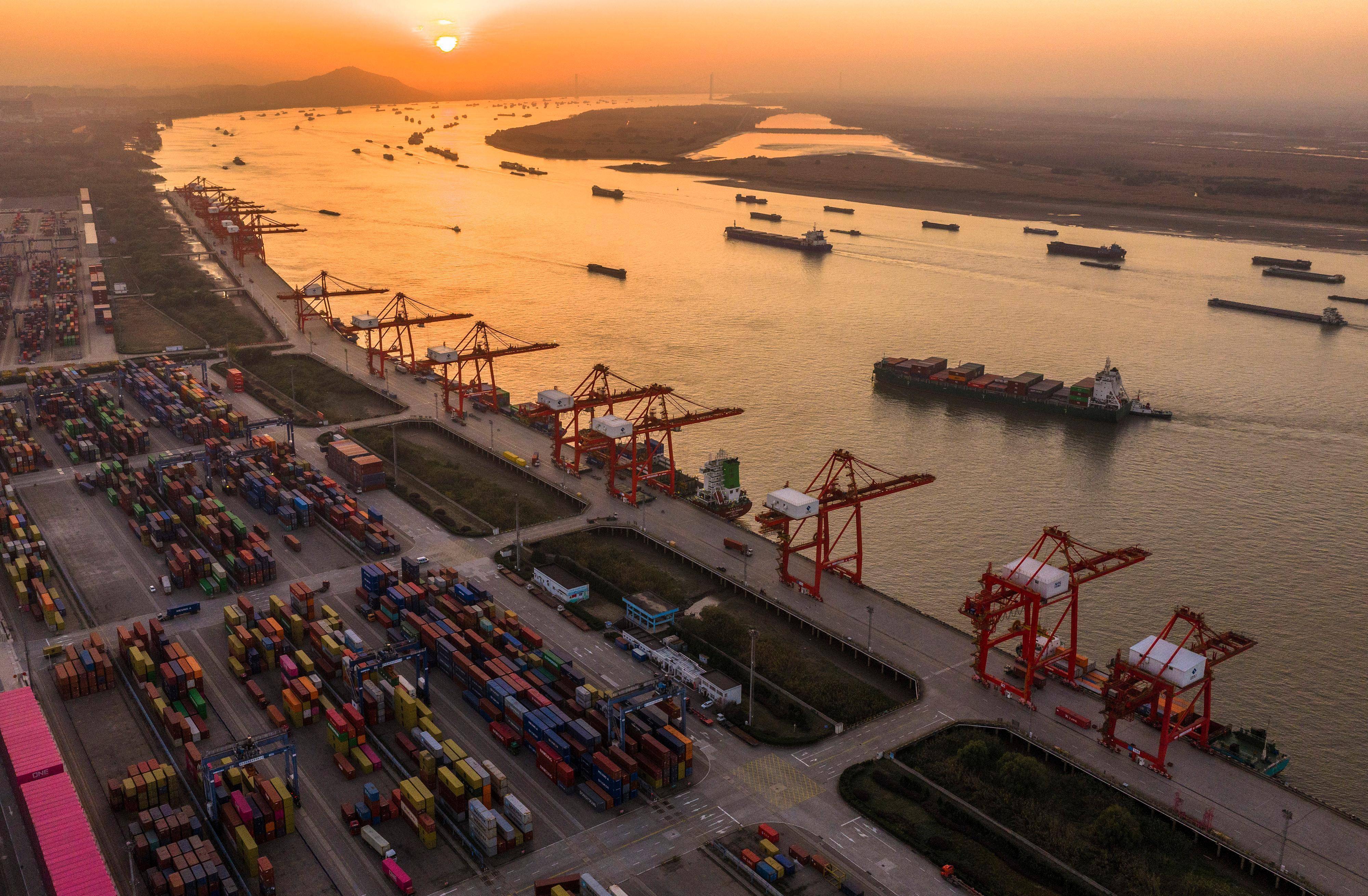 12月9日拍摄的南通港通海港区集装箱码头(无人机照片)。 新华社发(许丛军摄)