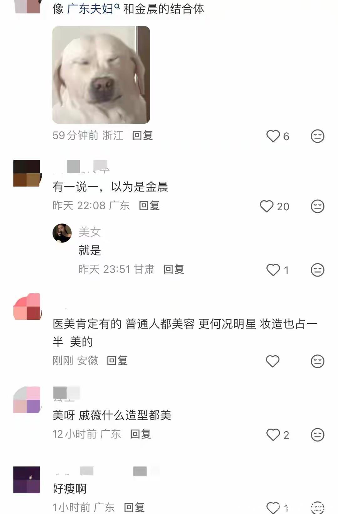 就开始在评论区说像谁像谁,说像广东夫妇和金晨混在一起,说她脸上一直在做加法,这些说法一出来就会滚成一团,因为脸这种东西太直观了,你不需要懂什么,你只要觉得不像,就会下意识问一句到底发生了什么 。