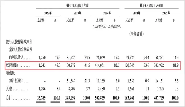 2025年上半年,海辰储能实现净利润为2.13亿元,其中政府补贴金额就高达3.34亿元,远超利润规模。剔除这部分因素,其实海辰储能还是亏损。