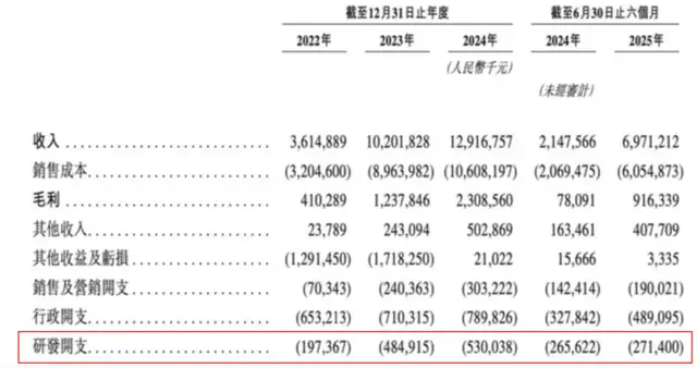 从2022年到2024年,海辰储能的研发费用分别为1.97亿、4.85亿和5.30亿,累计投入为12.12亿,研发费用率则从5.46%一路降至4.10%。