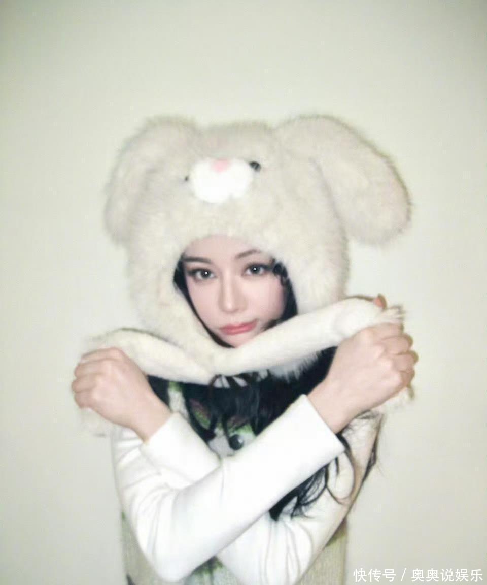 迪丽热巴最新晒出的一组日常自拍,直接甜翻全网,评论区瞬间被粉丝的尖叫刷屏!镜头里的她彻底褪去明艳御姐的气场,头戴一顶软乎乎的白色兔子帽,搭配简约的针织马甲和纯色白内搭,休闲又温柔,慵懒的冬日氛围感直接拉满。