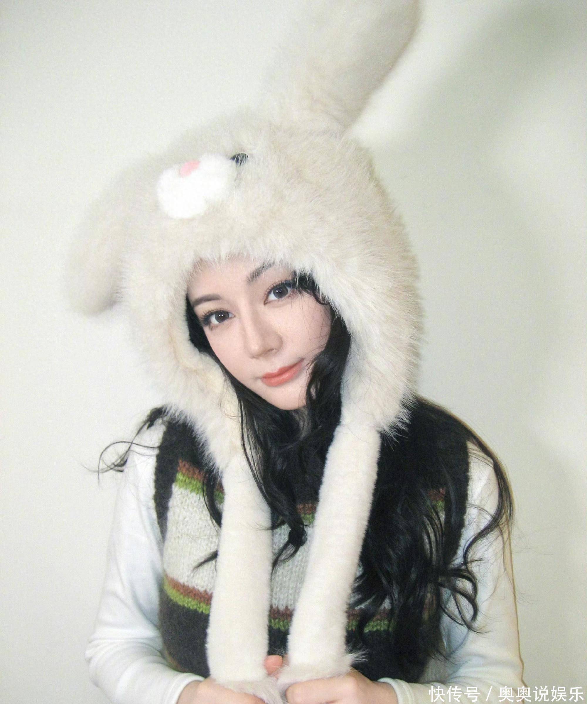 她对着镜头随性摆拍,时而轻轻扯动帽绳,让兔子耳朵俏皮弹起,时而用帽子半遮脸颊,露出精致的眉眼,甜美的笑容治愈感十足。黑长卷发自然散落,衬得五官愈发立体,每一个小表情都软萌到犯规,完全是甜妹本妹。